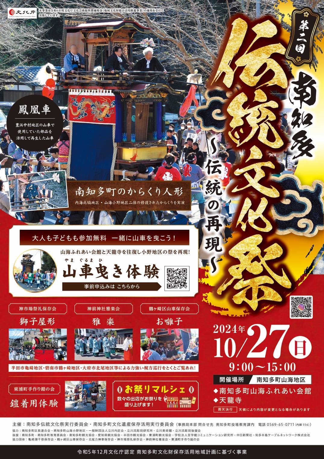 会場では、昨年好評を博した山車曳き体験や、からくり人形の実演が行われるなど、大人も子どもも参加できるお祭りです。